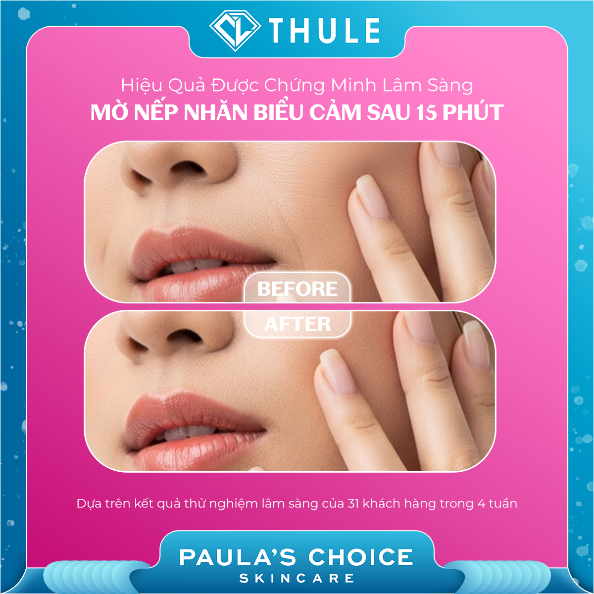 - Thoa đều toàn mặt, tập trung vùng có nếp nhăn