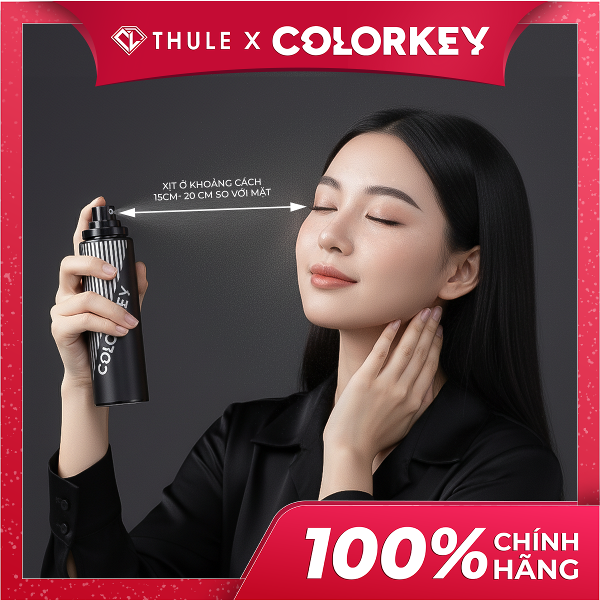 - Giữ chai cách mặt khoảng 20–30cm và xịt đều 2–3 lần